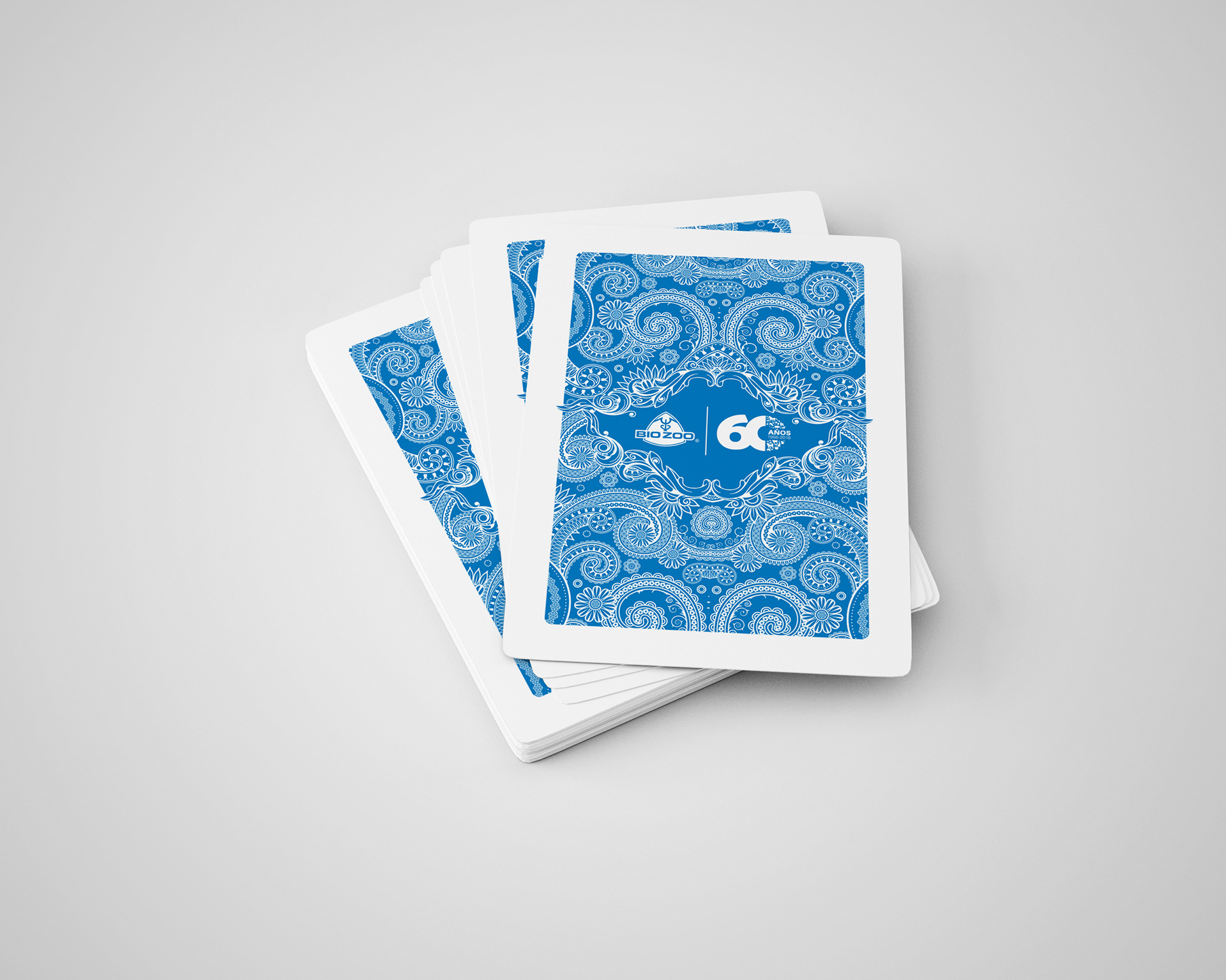 Diseño de naipes corporativo para el 60 aniversario de Laboratorios BIO ZOO BIO ZOO Laboratories coporate playing cards set, 60th anniversary edition