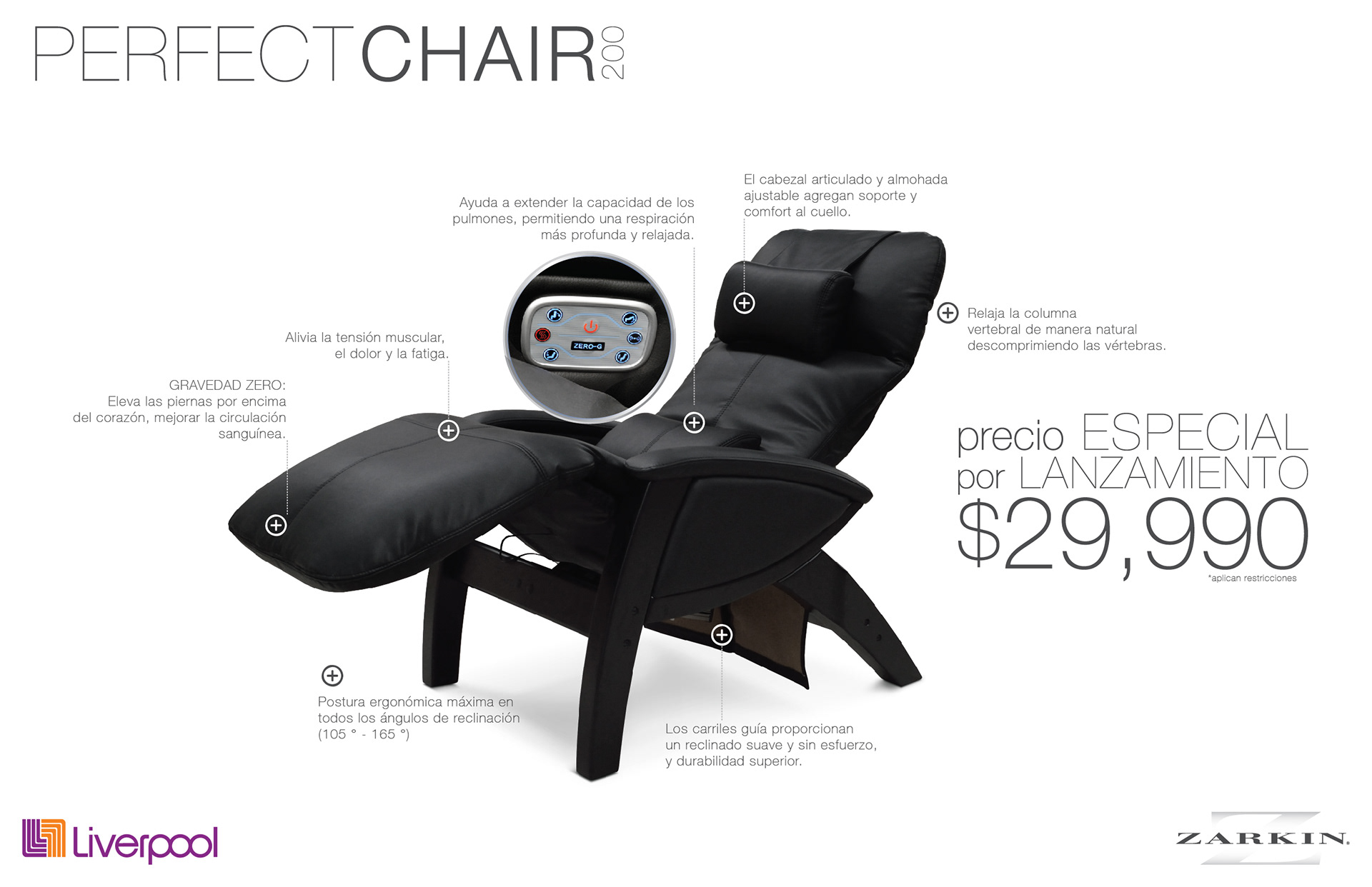 Campaña de lanzamiento, para el sillón de masajes "Perfect Chair 200", en Liverpool.